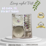 Bộ đồ ăn cao cấp thích hợp làm quà biếu tặng, mỗi bộ đồ ăn đều được đóng gói cẩn thận, bắt mắt.Mỗi bộ sản phẩm bao gồm:06 bát cơm01 bát chấm01 đĩa chấm01 bát tô đường kính 18cm01 đĩa vuông 18x18 cm hoặc đĩa tròn phi 20cm01 đĩa tròn phi 17,5cmSản phẩm bộ đồ ăn cao cấp Bát Tràng được đóng gói đẹp mắt, hoạ tiết đơn giản h