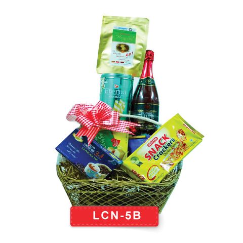 GIỎ QUÀ: 500.000 VNĐ (LCN-5B)- 3 gói gạo lứt sấy 4 trong 1: VN xuất khẩu- Bánh quế ChoCho: Nhập khẩu Indo- Nước uống nho xanh: Nhập khẩu Malaysia- Bánh snack cracker: Nhập khẩu Indo- Bánh caramel: Nhập khẩu Indo- Cafe hòa tan 3 trong 1: VN xuất khẩu- Bánh durian sầu riêng: Nhập khẩu Indo